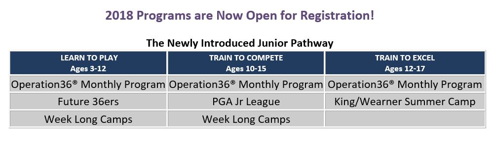 Operation 36®: (Ages 7-17) Juniors will learn to play the game from a hole out perspective progressing through six levels.